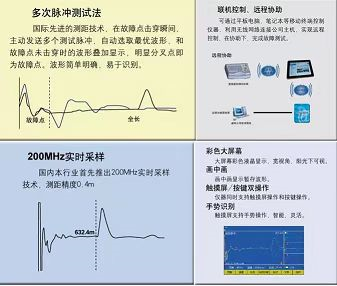 ⑴故障測(cè)距(預(yù)定位)方法:①提供低壓脈沖法(內(nèi)含比較法)②脈沖電流法。